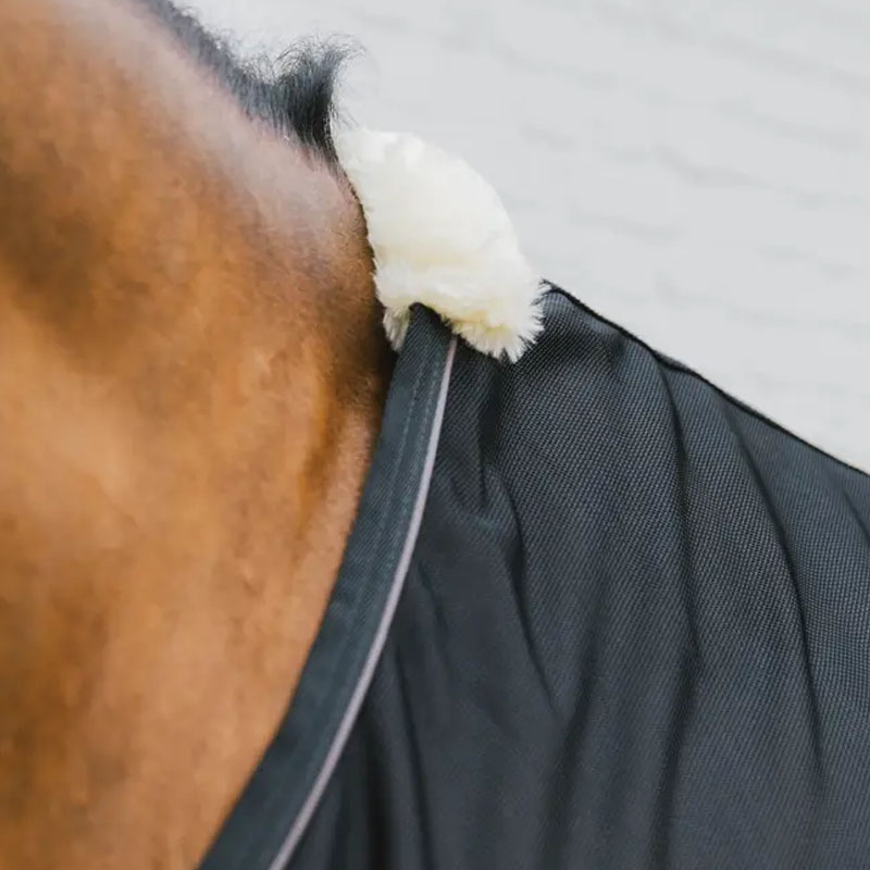 Dekkenet er anatomisk formet for optimal passform og ligger stabilt på hesten under bevegelse. Innsiden ved brystet er forsterket for å redusere risiko for gnag, mens myk kunstig saueskinn ved manken gir ekstra komfort.