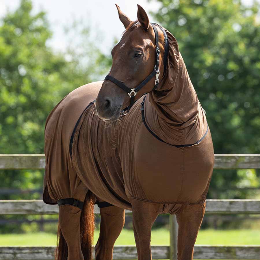 Et funksjonelt eksemdekken som gir effektiv beskyttelse mot insekter og bidrar til økt komfort for hester med sensitiv hud. Laget av finmasket polyester som er både pustende og UV-beskyttende.