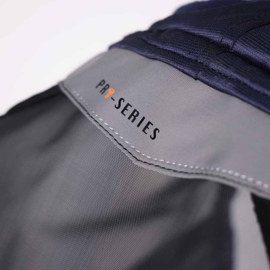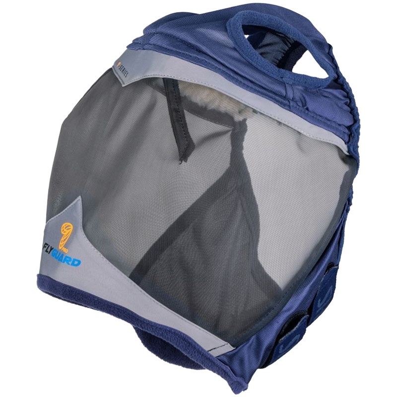 Shires Fluemaske Fly Guard Pro Fine Mesh i marineblå er designet for å gi optimal beskyttelse mot irriterende fluer og insekter. Laget av finmasket nett, gir den god plass til hestens øyne og har et hull for ørene. Masken gir +70% UV-beskyttelse og er laget av et elastisk materiale med god pusteevne, noe som sikrer komfort for hesten. Den har en elastisk, tettsittende nakke og to borrelåsfester for sikker passform. Polstrede sømmer på innsiden bidrar til en utmerket passform.