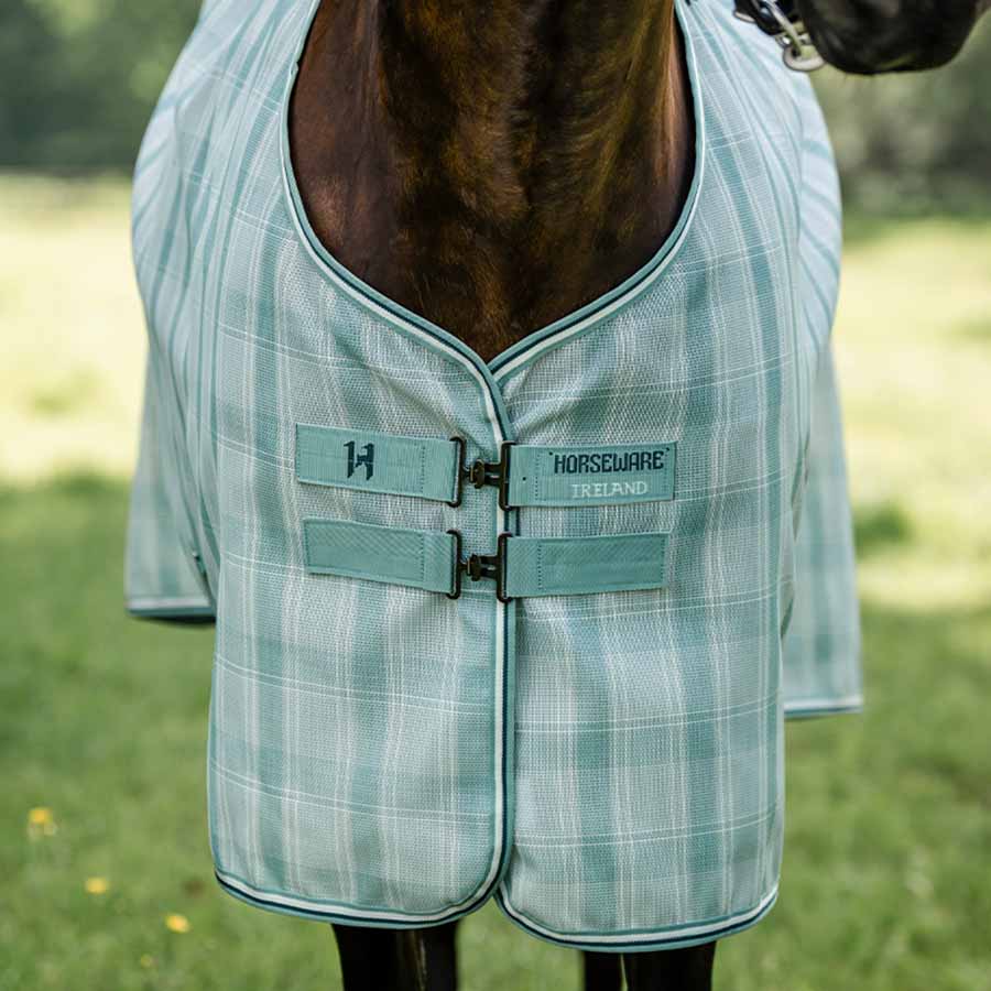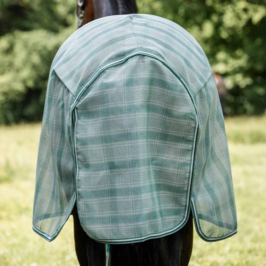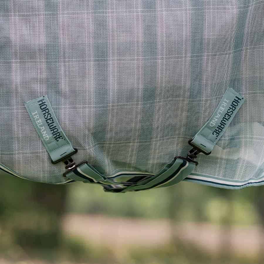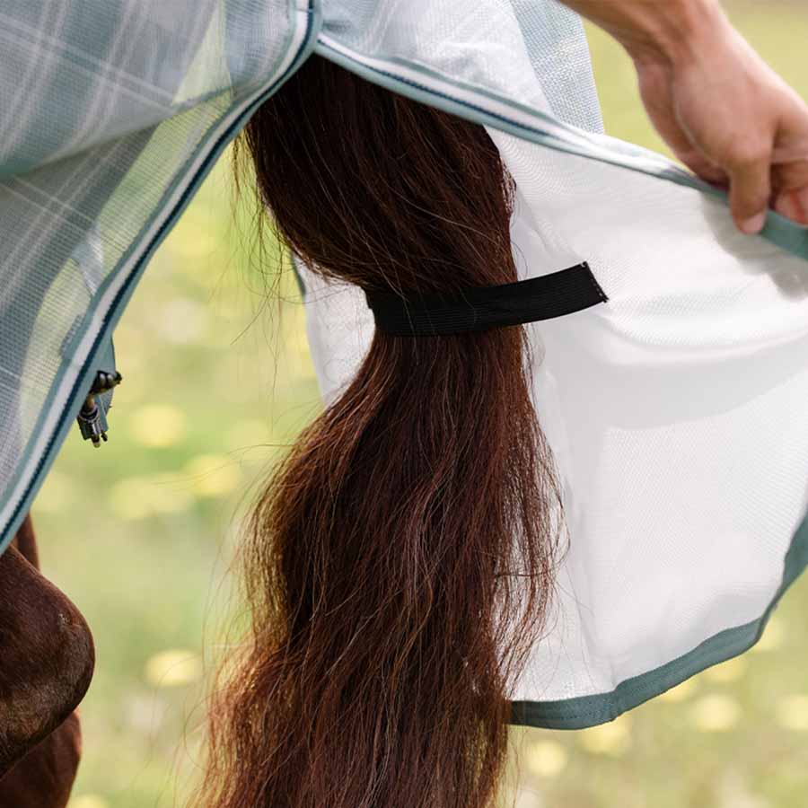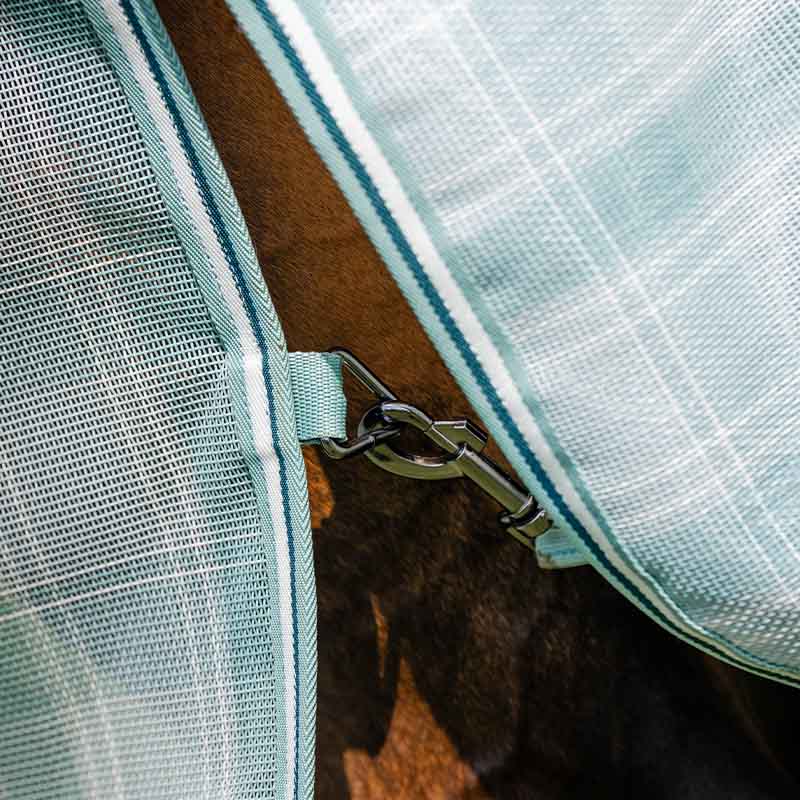 Foran lukkes insektdekkenet med rette bogspenner, mens fremre benbuer gir hesten bedre bevegelsesfrihet. Kryssgjorder bidrar til å holde dekkenet på plass. Modellen er også utstyrt med både en avtørkbar halestropp og løkker for bensnorer.