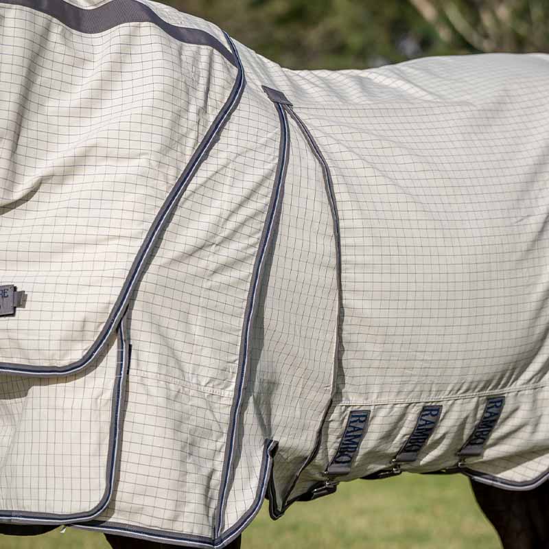 Ytterstoffet består av et polycottonmateriale med 40 % bomull, en kombinasjon som gir god pusteevne og en myk og behagelig følelse mot hesten.