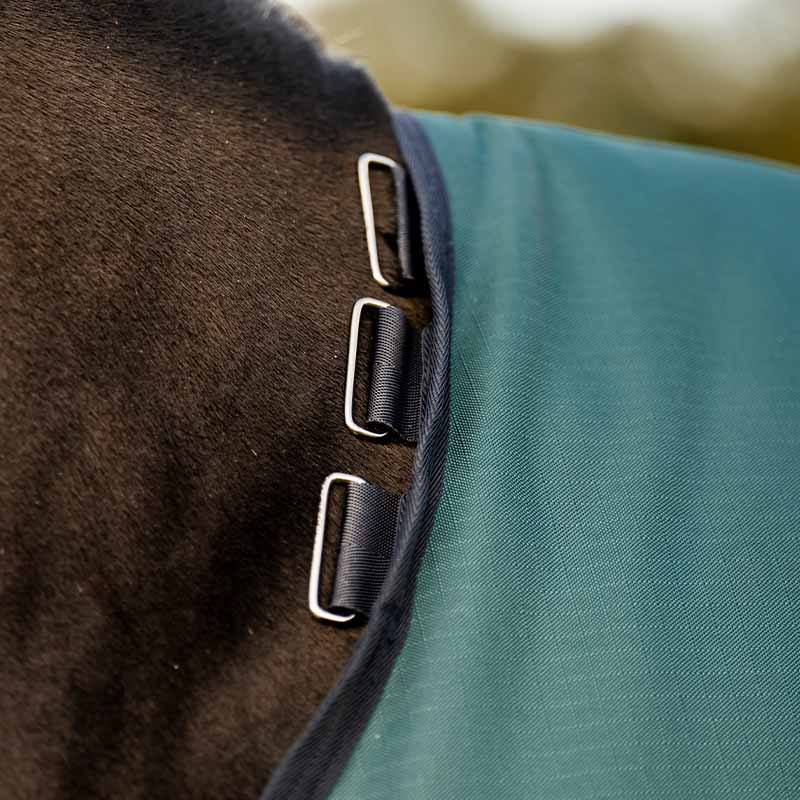 Teppet har to kryssgjorder, fester for benstropper og en halestropp som holder det sikkert på plass – selv ved mye bevegelse på beite. Det har også fester for hals og er kompatibelt med Horsewares praktiske linersystem. Hals, liner og benstropper selges separat.