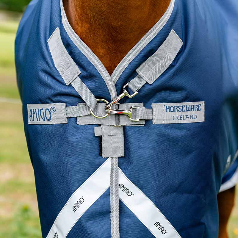 Amigo 1200D Turnout 50g er et lett fôret utedekken som kombinerer slitestyrke med funksjon og komfort. Dekkenet er laget av sterkt 1200 denier polyester som både er vanntett og pustende. Det tynne 50g fyllet gir en lett, varmende effekt uten å bli for varmt.