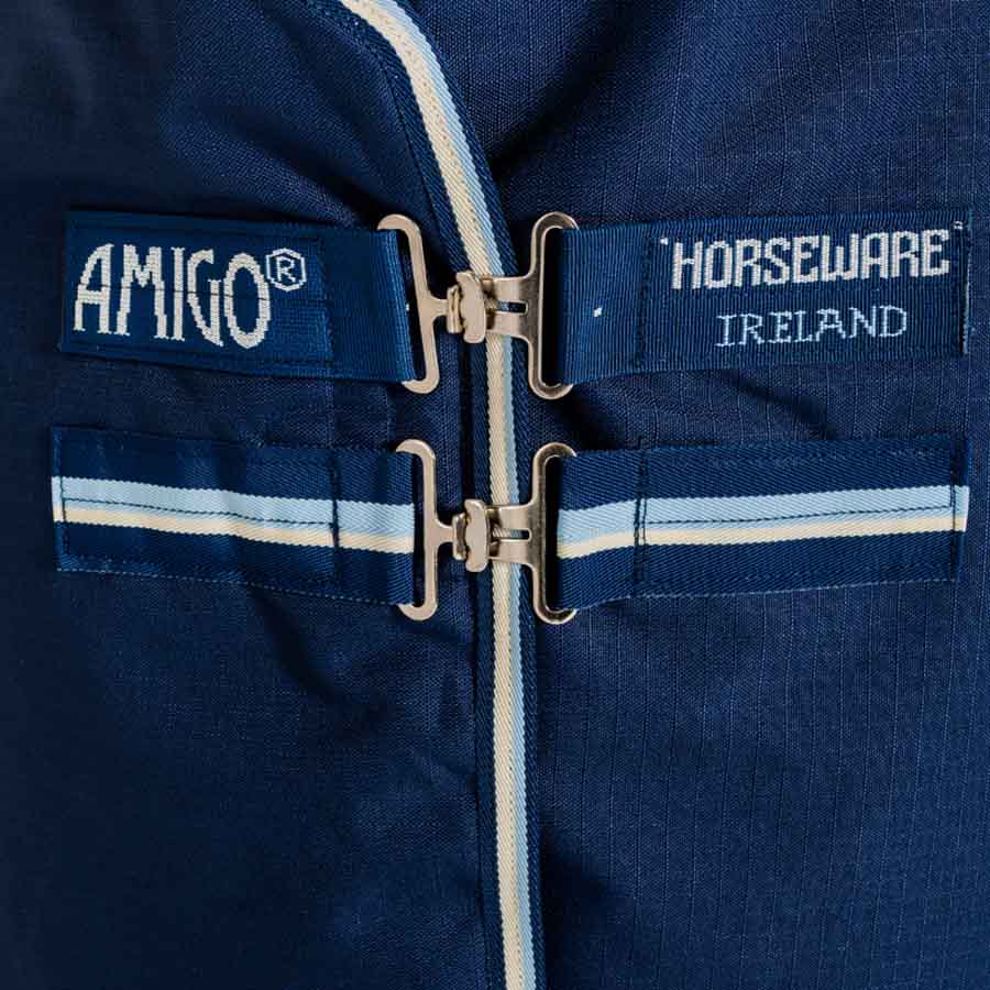 Amigo Ripstop 900D 0g er et pålitelig regndekken fra Horseware, designet for å holde hesten din tørr og komfortabel under våte forhold. Det er laget av et sterkt og holdbart 900D ripstop polyester som tåler både slitasje og vær. Den avtakbare hetten gir ekstra fleksibilitet, slik at du kan tilpasse dekke etter været. Liner-løkker gir fleksibilitet i dekkevikt etter hvert som sesongene endres. Den klassiske rette frontlukningen og de kryssede surcinglene sikrer en sikker passform, mens det glansforbedrende polyesterfôret gir hesten din en blank pels.