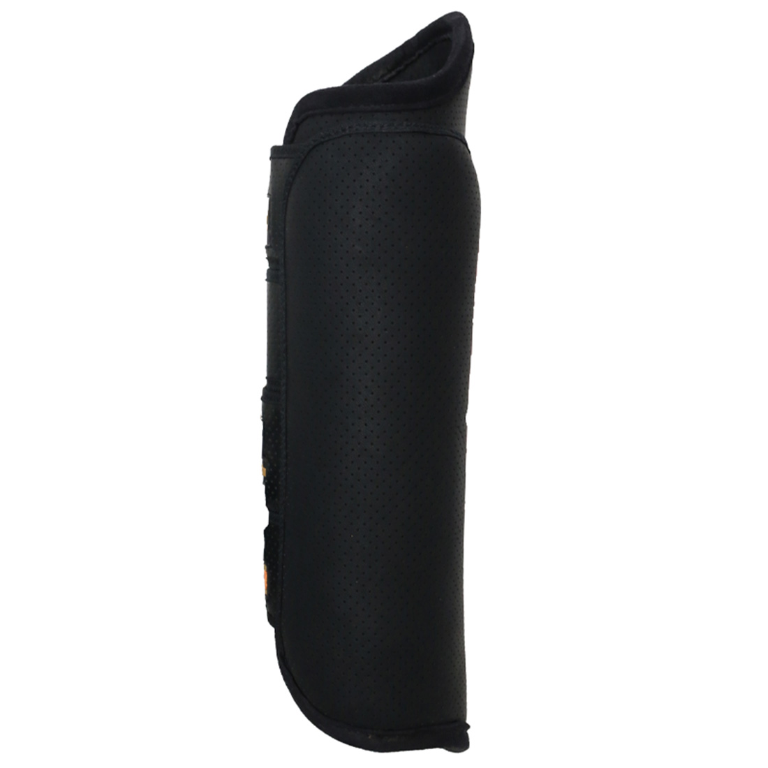 Det andre laget består av 5 mm tykt EVA-skum, som er ekstremt lett og støtdempende, noe som gir stabilitet til både bootsene og din hests ben. EVA-skumet har ventilasjonshull for å slippe ut varme og forhindre overoppheting. Det tredje laget er en 2 mm tykk TPU-hardskall som beskytter mot store støt og forhindrer penetrering fra hestesko eller sporer. For ekstra beskyttelse ved hopping har vi lagt til ytterligere et 5 mm tykt EVA-skum på framsiden av bakbenet.
