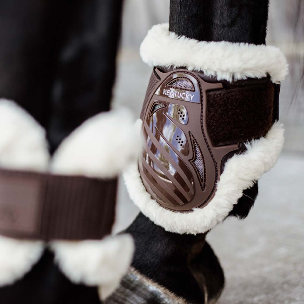 Unghestbeskyttere laget av et brunt, kraftig TPU-skal med multiple ventilasjonshull samt en større, trekantet mesh-ventilasjon som sikrer luftcirkulasjon og motvirker overoppheting. Også innsiden av beskyttelsen er forsterket med et ekstra lag TPU for å sikre høy holdbarhet. Fôret består av 3D Spacer mesh som har et topp- og bunnlag av strikket polyester og et mellanskikt av fiber, noe som i kombinasjon virker blant annet støtdempende og har meget god pusteevne. De er forsynet med kunstig saueskinn som ikke bare er en stilig detalj, men også bidrar til ytterligere komfort, og de knytes selvfølgelig med borrelås, i henhold til FEIs regler for unghestbeskyttelse.