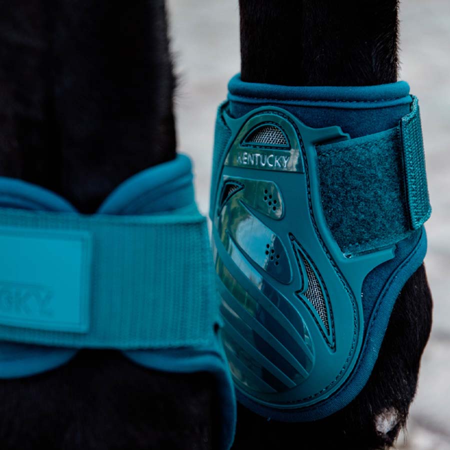 Unghestbeskyttelse laget av et grønn/blått, kraftig TPU-skal med flere ventilasjonshull samt en større, trekantet mesh-ventilasjon som sikrer luftcirkulasjon og motvirker overoppheting. Også innsiden av beskyttelsene er forsterket med et ekstra lag TPU for å sikre høy holdbarhet. Fôret består av 3D Spacer mesh som har et topp- og bunnlag av strikket polyester og et mellomlag av fiber, som i kombinasjon virker blant annet støtdempende og har meget god åndbarhet. De kneppes selvfølgelig med borrelås, i henhold til FEIs regler for unghestbeskyttelse.