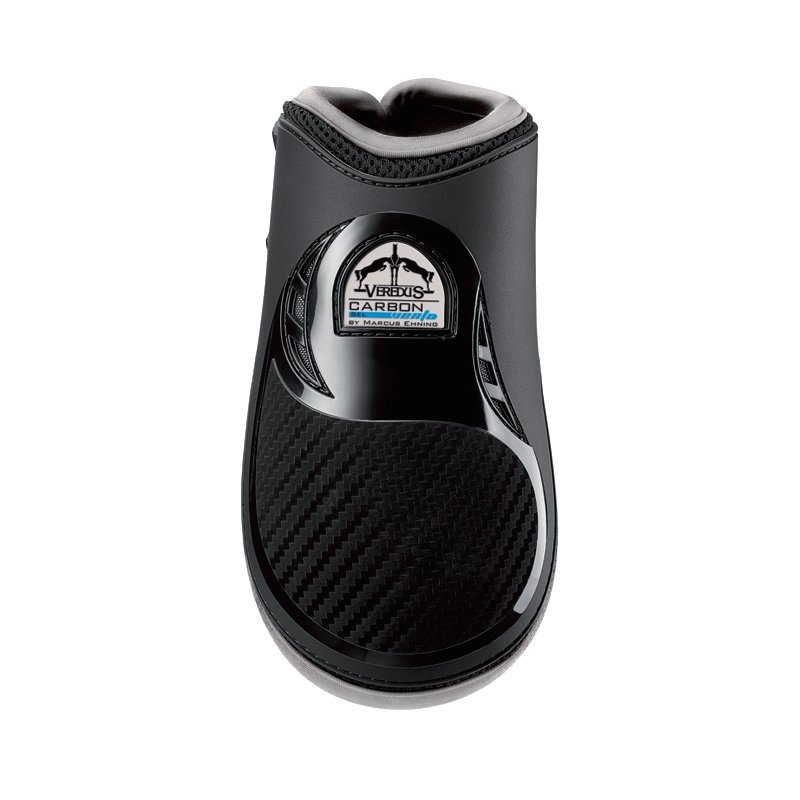 Bakskjerm fra Veredus i Carbon Gel Vento serien. Slik som alle Carbon Gel beskyttelser, så finnes det på innsiden en gel som på en utmerket måte fanger opp støt, og den ytre forsterkningen i karbonfiber stopper selv de kraftigste slag mot koden. Innsiden i neoprene er mikroperforert, noe som betyr at den er full av mikroskopiske hull som slipper igjennom varmen som beinet avgir, og på så måte holder hesten sval og komfortabel.