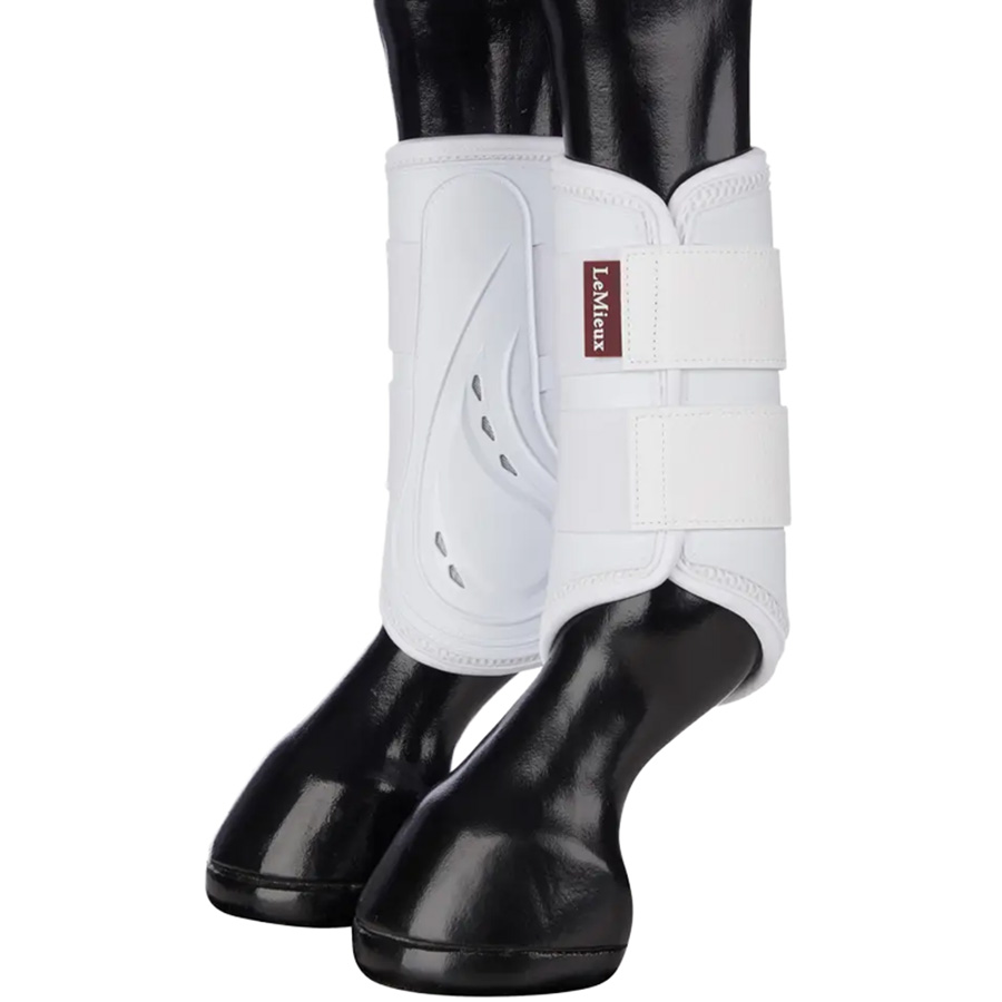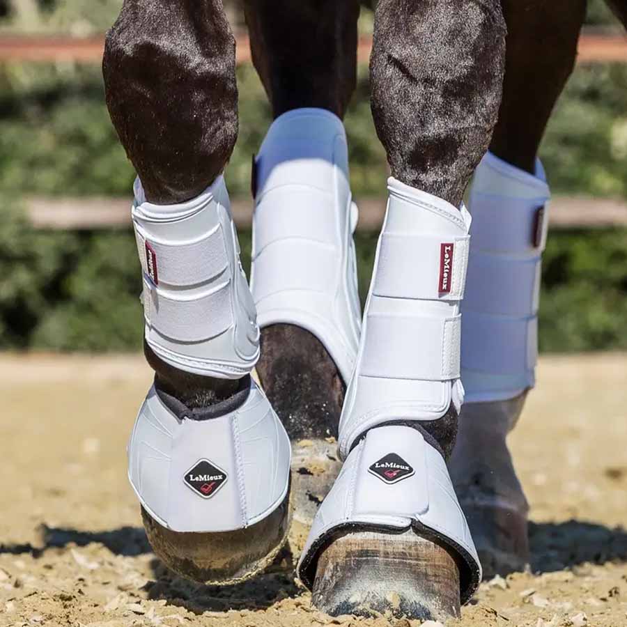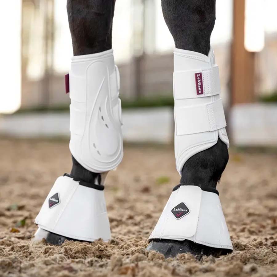 ProShell-beleggene fra LeMieux gir omfattende beskyttelse rundt hele hestebeinet. Det formstøpte, hvite PU-ytterskallet gir stabil støtte og beskytter effektivt mot slag, samtidig som det er fleksibelt og ikke hemmer bevegelsen.