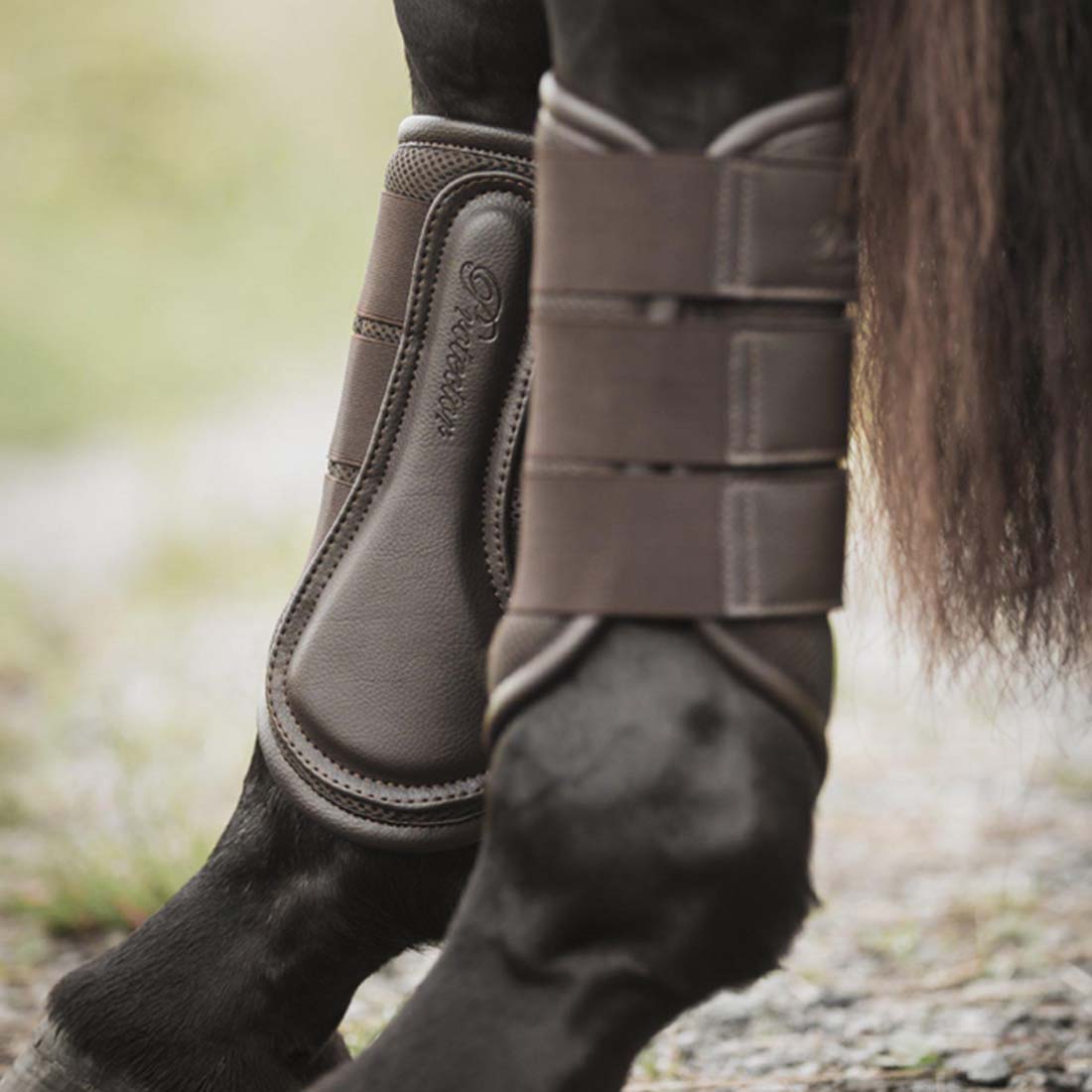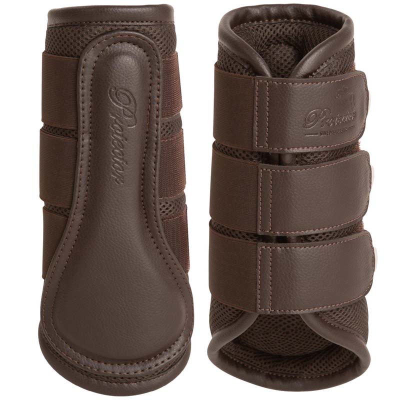 Lette og godt ventilerte belegg fra Protector, utviklet for å gi stabil beskyttelse uten å gå på bekostning av komfort eller bevegelighet. De brune beskytterne er laget i slitesterk 3D-mesh som slipper gjennom luft og holder beina svale, selv under intense treningsøkter. Det myke fôret har svært god pusteevne og gjør at de også egner seg godt som belegg i luftegård.