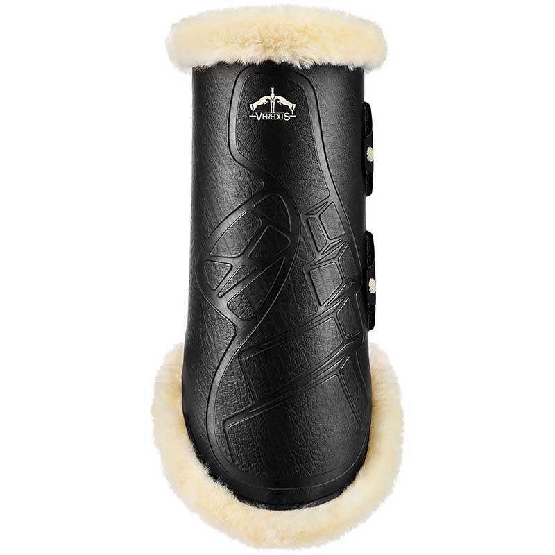 Dressurbelegg fra Veredus med utside i kunstlæder og en innsiden i syntetisk fåreskinn. Populære beskyttelser som brukes flittig både i ridningen og andre situasjoner som for eksempel i boksen under konkurranse. Syntetisk fåreskinn er overlegent ekte på mange måter da det har en helt annen levetid og holder fargen betydelig bedre. I tillegg er de lettere å børste ut, sand og smuss fester seg ikke så lett og om de blir fuktige så tørker de betydelig raskere.