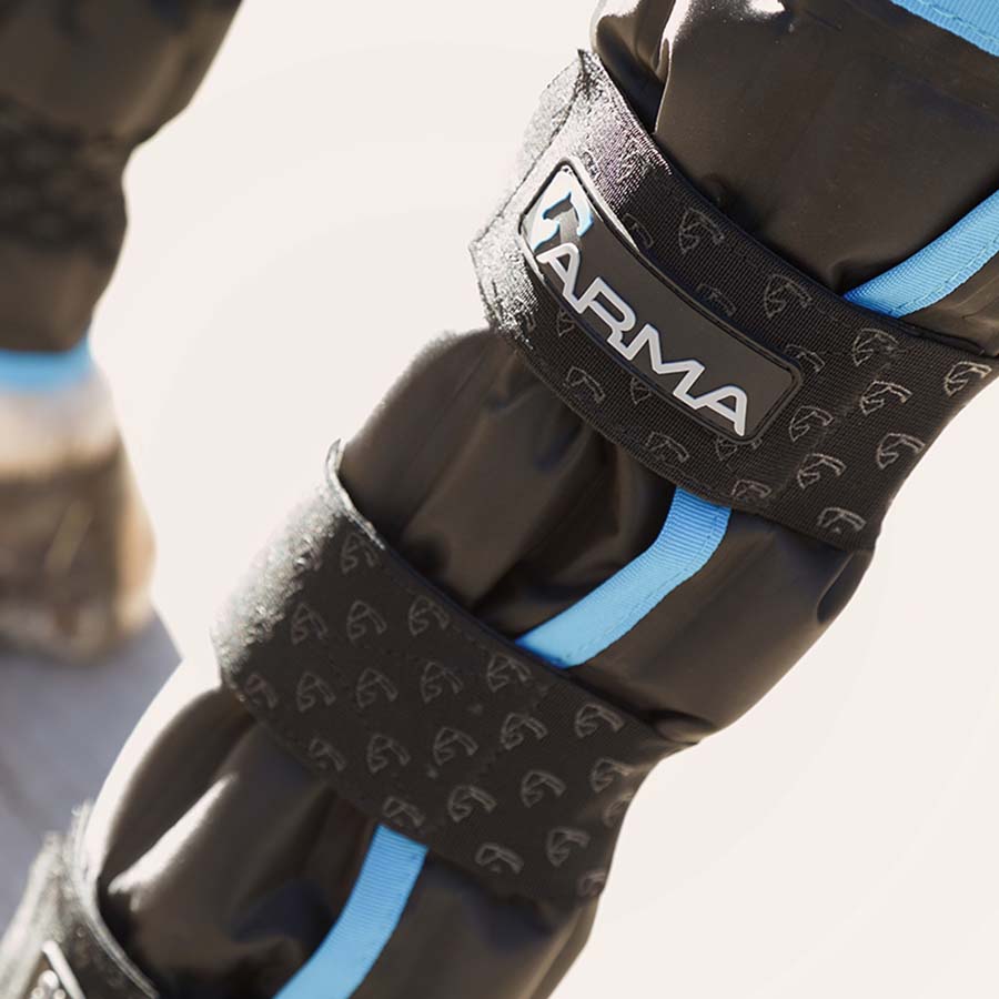 Kjølebandasje SubZero fra ARMA er smidige beskyttelser som hjelper til med å kjøle ned hestens ben etter hard anstrengelse. Disse flexbandasjene er lette å bruke; legg dem i fryseren for å aktivere gelen og bruk dem rett fra fryseren eller oppbevar dem i en kjølebag ved behov. De festes enkelt med elastisk borrelås, noe som gjør dem praktiske å ta på og av. Kjølebandasjene er egnet til bruk på alle deler av hestens fram- eller bakben, noe som gjør dem allsidige for ulike situasjoner. Selges parvis. Artikkelnr: