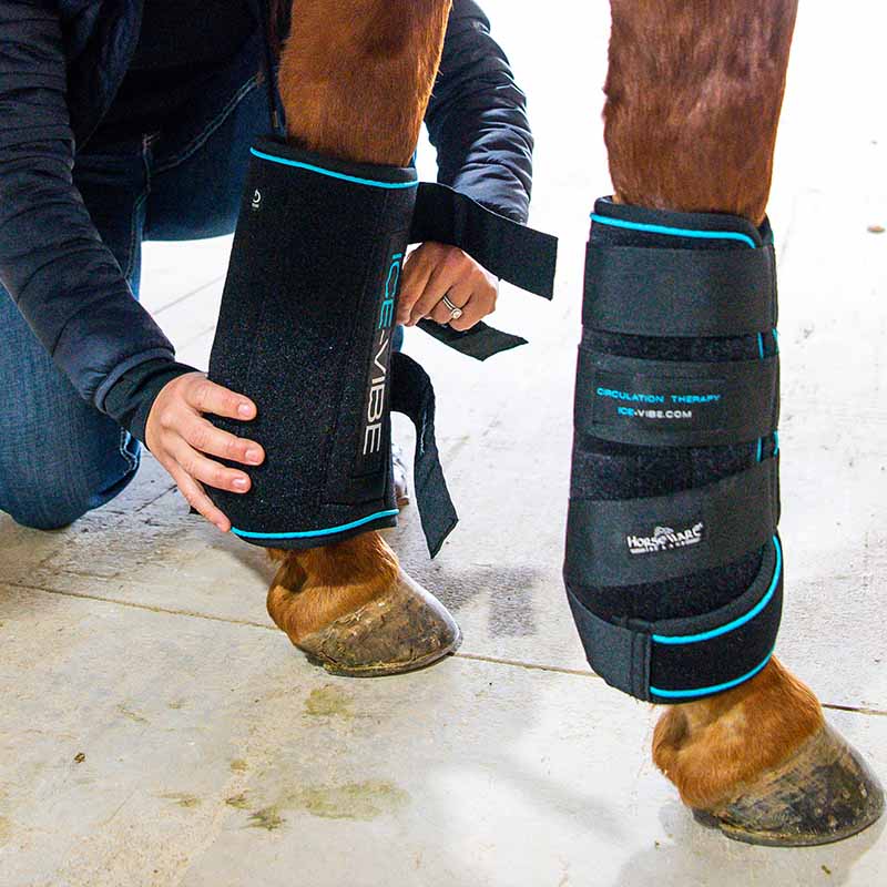 Kjølebeleggene Ice-Vibe brukes for en kjølende effekt på både frem- og bakbenene, før eller etter trening - eller hvorfor ikke under rehabilitering. De er til for å booste blodsirklasjonen gjennom vibrasjoner som har en masserende effekt og virker mot blant annet påfremsede ligamenter og senskader. De hjelper også til å stimulere lymfesystemet, for å fjerne hevelser og ømhet.