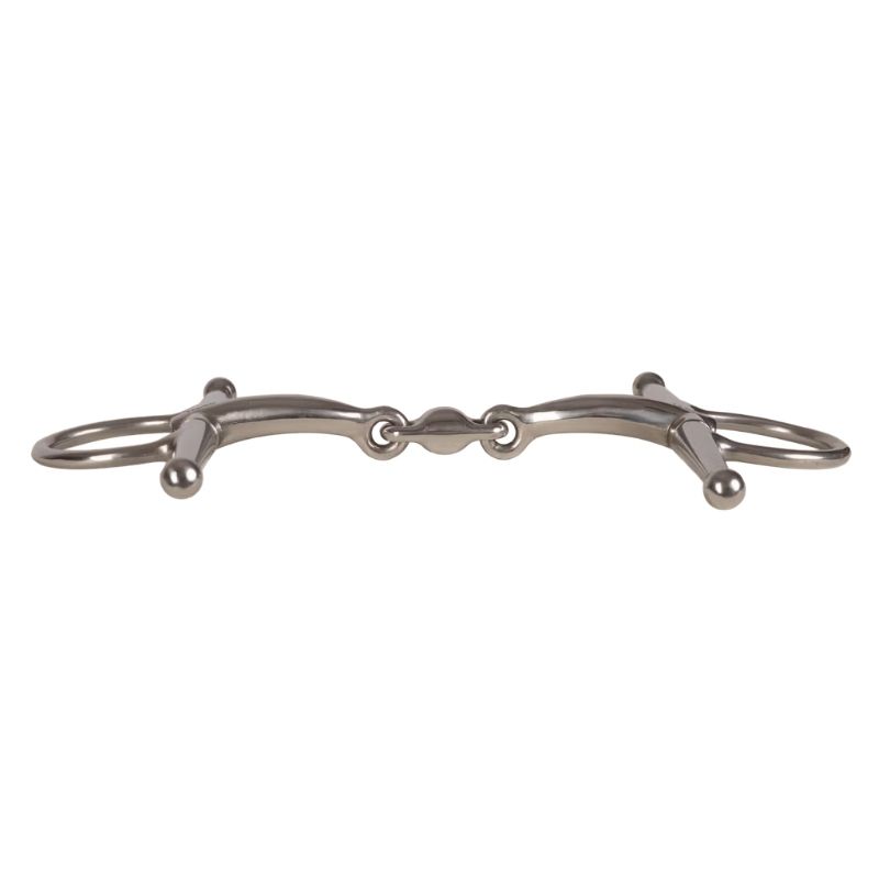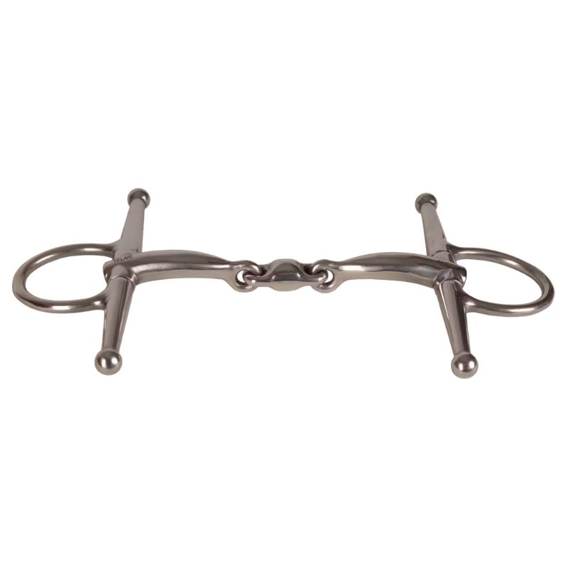 VELARI Fullsjekkbitt med tredelt munndel er laget av rustfritt stål, og gir jevn trykkfordeling og stabil kontakt. Fullsjekk-designet gir tydelig sidestøtte, som hjelper hester med å forstå tøylehjelpene, noe som gjør det spesielt egnet for yngre eller mindre erfarne hester. Den tredelte munndelen reduserer nøtteknekker-effekten og fordeler trykket jevnt over tungen og lanene, noe som gir en myk og responsiv følelse. Denne konstruksjonen er ideell for hester med lavere gane og de som er følsomme for trykk fra todelte bitt. Munndelen i rustfritt stål gir en nøytral smak, noe som gjør det egnet for hester som trives med en enkel og stabil kontakt.