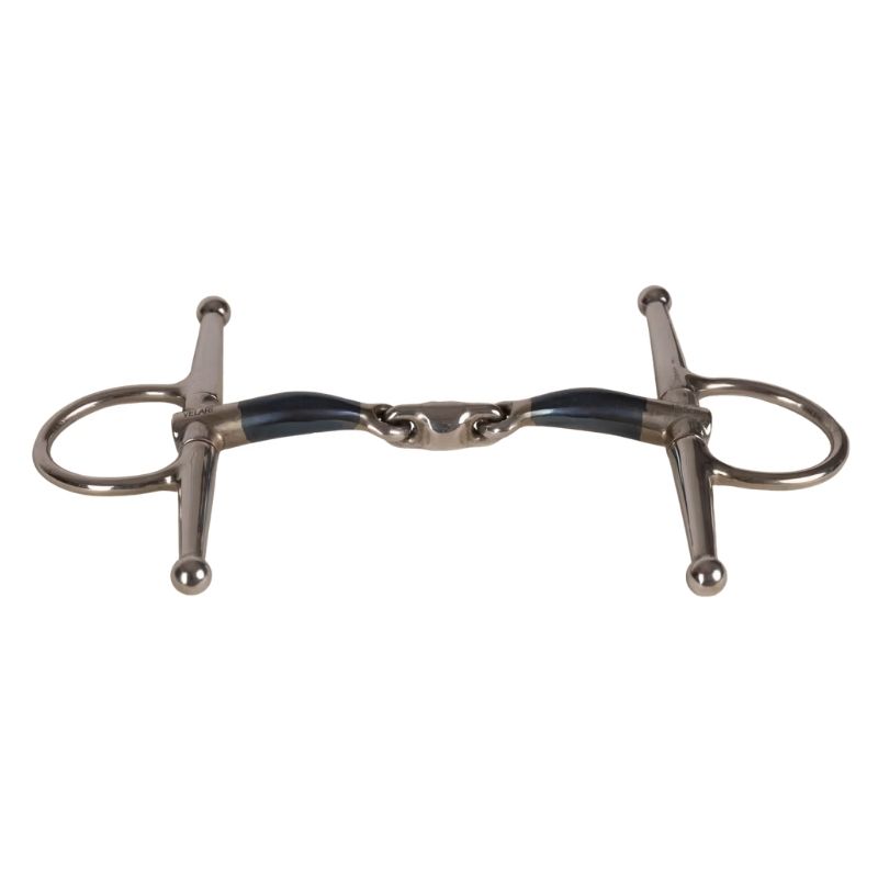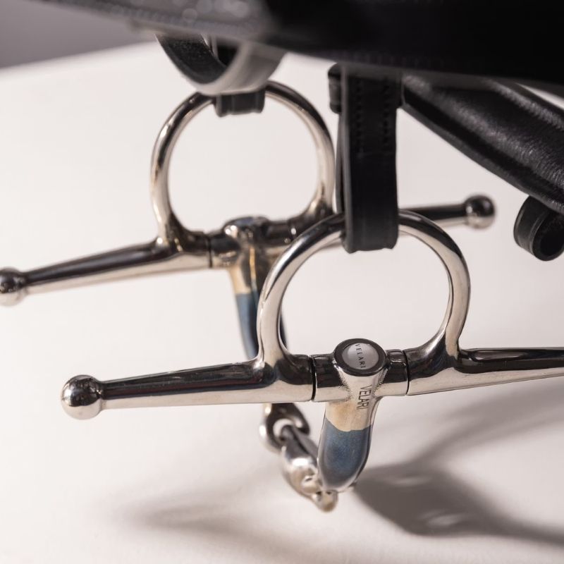 VELARI Fullsjekkbitt er et tredelt bitt designet for jevn trykkfordeling og stabilitet. Laget av sweet iron, fremmer det salivering og avslapning hos hesten. Fullsjekk-sidestykkene gir tydelig sidestøtte, noe som gjør det spesielt egnet for yngre eller mindre erfarne hester. Den tredelte konstruksjonen reduserer nøtteknekker-effekten og fordeler trykket jevnt over tungen og lanene, noe som gir en myk og responsiv følelse. Dette bittet er ideelt for hester med lavere gane og de som er følsomme for trykk fra todelte bitt. Sweet iron-munndelen oksiderer naturlig og utvikler en patina som kan forbedre akseptansen. Skyll med varmt vann etter bruk og tørk grundig. Oppbevar tørt og sjekk regelmessig for slitasje.