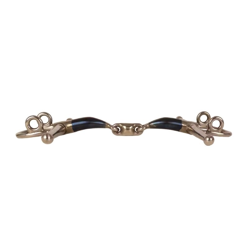 VELARI Fullsjekkbitt Gag Tredelt Sweet Iron er laget for ryttere som ønsker et bitt med klar sideveis veiledning og lett trykk i nakken. Det hjelper hesten med å løfte framdelen og opprettholde retthet, noe som er spesielt gunstig for hester som har en tendens til å bli tunge i hånden. Sweet iron-munndelen oksiderer naturlig ved bruk, noe som fremmer spyttproduksjon og hjelper hesten med å forbli myk og mottakelig i munnen. Den tredelte munndelen fordeler trykket jevnt over tunge og laner, forhindrer nøtteknekker-effekten og gir en myk, stabil følelse. Fullsjekk-sidestykkene stabiliserer bittet sideveis og forbedrer svinger, spesielt nyttig for yngre eller mindre balanserte hester. Gag-effekten gir en lett løftende innvirkning gjennom trykk i nakken, ideell for hester som blir tunge foran.