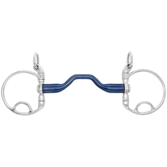 Den roterende ringen i sidestykket reduserer påvirkningen på nakke og kjeve, da trykket ikke overføres direkte via tøylene. Tøylen kan festes i den store D-ringen som beveger seg uavhengig av sidestykket, eller i den mindre ringen for en noe økt innvirkning. Happy Tongue Straight er en solid munnbit med port som gir tungefrihet, men uten bøyning, noe som gjør den noe mer direkte i sin innvirkning enn den buede varianten. Swivel-funksjonen gjør at munnbiten kan rotere horisontalt og tilpasse seg hestens bevegelser, noe som sikrer at bittet ligger stabilt og komfortabelt i munnen.