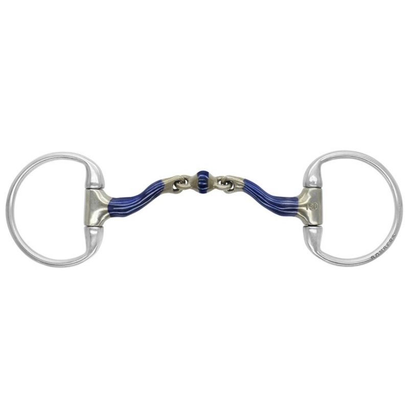 Muffebitt McHardy Dressage fra Bombers er designet for å gi en stabil og sikker kontakt i hestens munn. De faste ringene bidrar til å holde bittet på plass, og reduserer risikoen for å klype hestens lepper og munnviker. Med en middels høy port gir det god plass til tungen og reduserer trykket, ideelt for hester som er følsomme i tungen eller har en tendens til å senke hodet. Den sentrale delen, kjent som Buster Roller, er flatet ut for å fordele trykket over et større område, noe som gir en mykere følelse. Bombers bitt er håndlaget i Sør-Afrika og tilgjengelig i et bredt utvalg av størrelser og varianter, med mulighet for å velge mellom forskjellige munnstykker, ringer eller skanker, samt tykkelse.