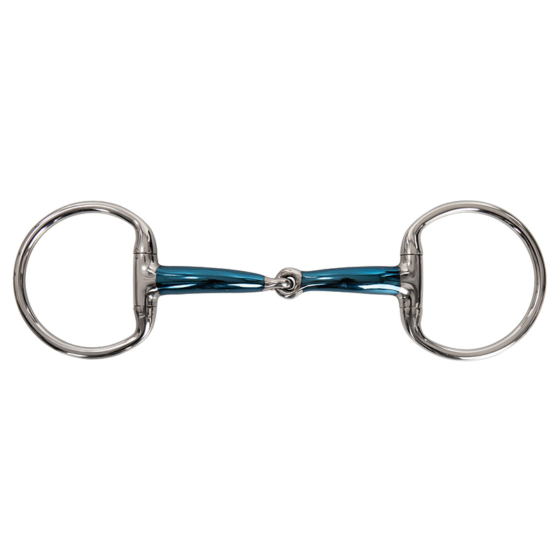 Et høykvalitets enkeltleddet eggbutt-bitt fra Lippo med faste ringer. Bittet er laget av rustfritt stål og belagt med blå Sweet Iron, som stimulerer hestens tyggebevegelse og øker spyttproduksjonen.