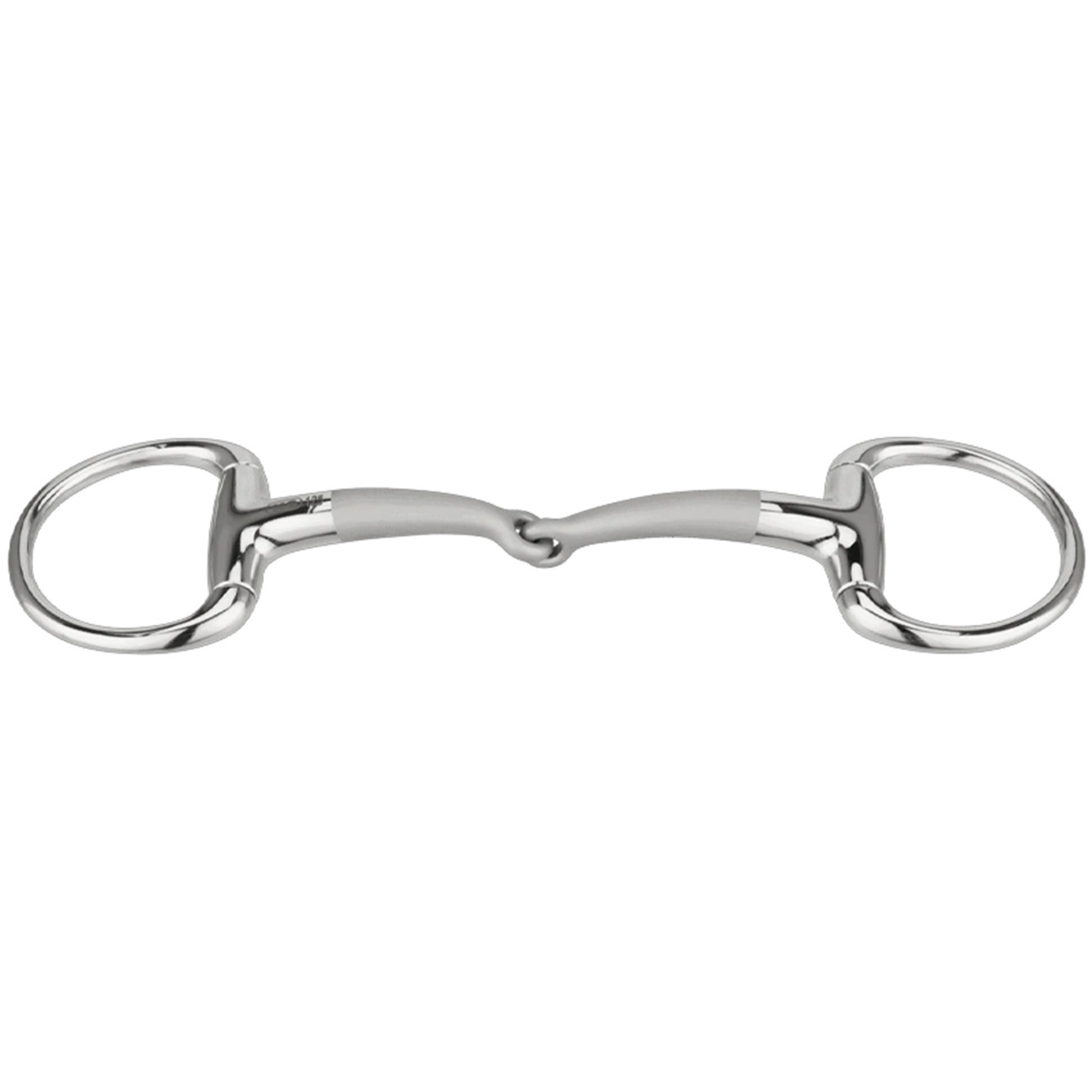 Det Todelt Satinox eggbittet Ø55 mm fra Sprenger er et todelt bitt med faste ringer og ergonomisk utformet munnstykke i rustfritt stål. Utformingen gir en jevn trykkfordeling mot tungen og er tilpasset for å ligge anatomisk korrekt mellom tunge og gane. Bittet gir en direkte og presis innvirkning.