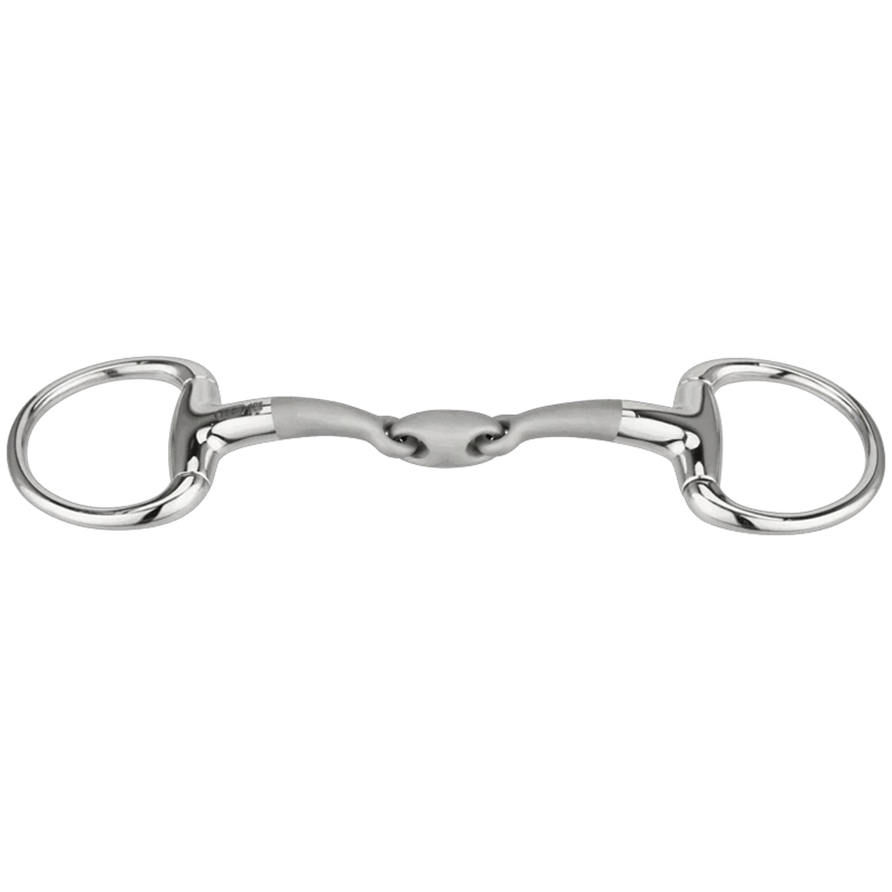 Det Tredelt Satinox eggbittet Ø55 mm fra Sprenger er et tredelt bitt med faste ringer og ergonomisk utformet munnstykke i rustfritt stål. Utformingen gir en jevn trykkfordeling mot tungen og er tilpasset for å ligge anatomisk korrekt mellom tunge og gane. Bittet gir en direkte og presis innvirkning.