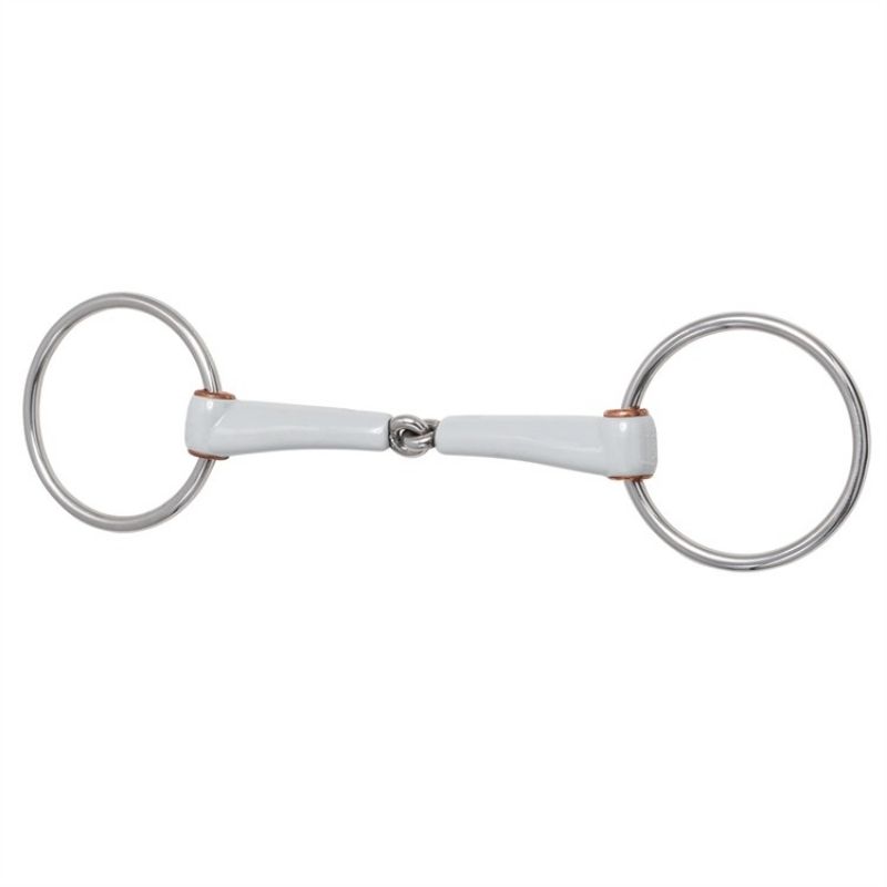 Det todelte trinsebittet fra Beris har et plastmunnstykke med brede kontaktflater mot tunge og laner, som sikrer jevn trykkfordeling og økt komfort for hesten. Den smalere profilen gjør at bittet tar mindre plass i munnen og gir en smidig følelse. Materialet har en svært glatt overflate som gir god gli, selv for hester som produserer mindre spytt. Munnstykket er i Medium Soft, som gir en balansert kombinasjon av stabilitet og fleksibilitet i kontakten. De løse ringene lar bittet bevege seg fritt i munnen, noe som kan gi en mer dynamisk kontakt. Ringene går gjennom integrerte kobberhylser, som reduserer friksjon og øker holdbarheten.