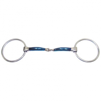 Bitt fra populære Bombers, todelt med løse ringer og Lock Up-funksjon som innebærer at bittet låser seg og oppfører seg som et rett bitt om hesten biter fast eller drar i bittet. Fordelen med dette er at bittet endrer funksjon og gjør det lettere for rytteren å få tilbake kontrollen. De blå partiene skal ruste for å bli søte og øke hestens spyttproduksjon, noe som gjør det lettere for hesten å akseptere bittet.