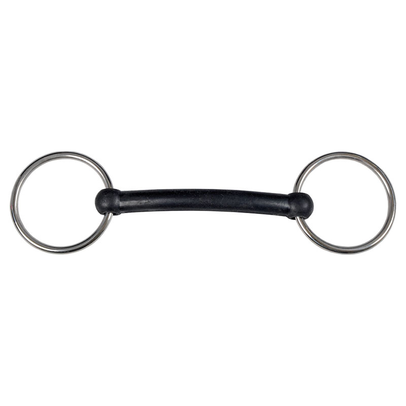 Rett gummibitt fra Horse Guard - den harde metallkjernen holder bittet stabilt og rett samtidig som det myke gummihylsteret gir en annen følelse i hestens munn sammenlignet med et vanlig stålbitt. Designet med løse ringer for å gi en god kontakt.