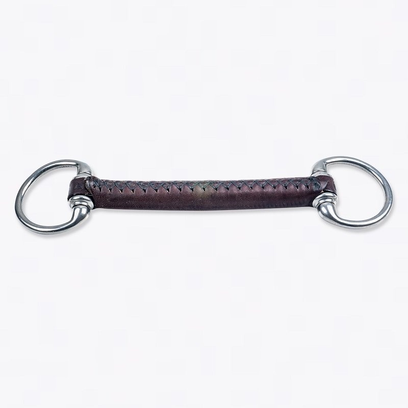 Lærbitt fra Trust Equestrian med faste ringer. Kjernen er i slitesterk nylon, noe som gjør at bitten er mer fleksibel enn en med metallkjerne. Lærbitt blir mykere ved kontakt med hestens spytt, noe som mange hester trives med og gjør at de aksepterer bitten raskere. Bør smøres inn med matolje før første bruk og behandles jevnlig på samme måte for lengre levetid.