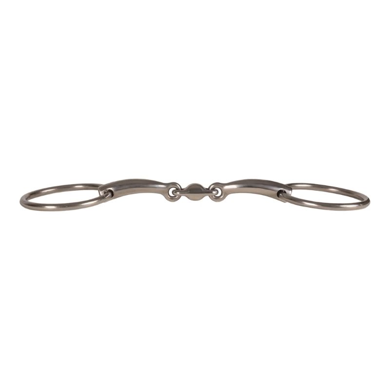 VELARI tredelt trinsebitt med løse ringer er laget av rustfritt stål med en tykkelse på 14 mm. Den tredelte konstruksjonen gir jevn trykkfordeling over tungen og lanene, reduserer nøtteknekker-effekten og gir en stabil og behagelig følelse i hestens munn. Dette gjør det ideelt for hester med lavere gane, da det reduserer trykket mot ganen for økt komfort. De løse ringene gir bittet økt bevegelighet, oppmuntrer til lett tyggeaktivitet og hjelper hesten å forbli myk og oppmerksom i hånden. Slitesterkt og med nøytral kontakt, passer dette bittet for hester som foretrekker en stabil, ukomplisert forbindelse uten ekstra stimulans. Skyll bittet i varmt vann etter hver bruk og tørk det grundig med en myk klut. Oppbevar det tørt og sjekk jevnlig for jevnhet og glatthet.