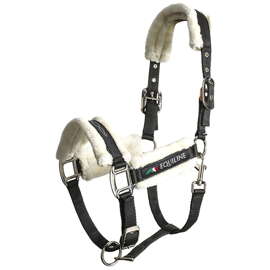 Dekorativ brodering i front og Equiline-logo på sidene gir et eksklusivt preg. Justeres på begge sider av nakkestykket og under haken for god passform. Lukkes med karabinkrok.