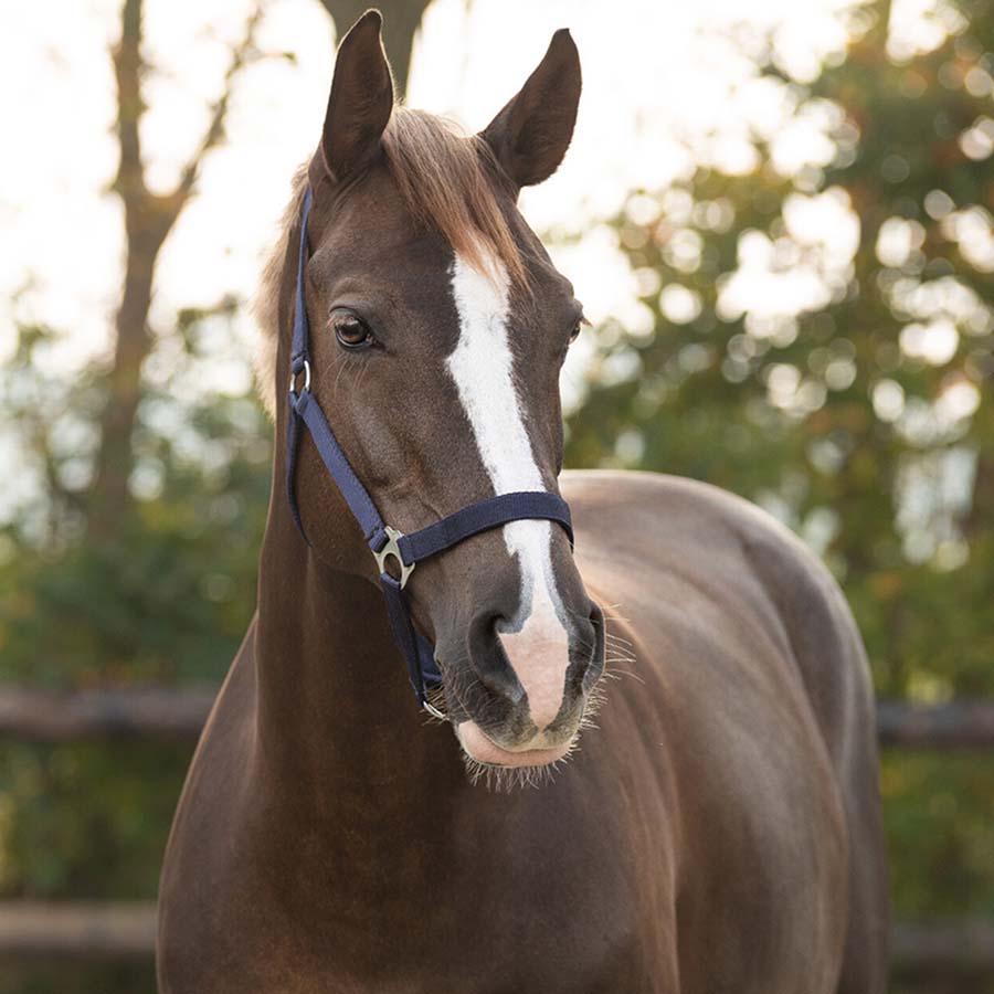 Justeres enkelt med spenne i nakkestykket for optimal passform og god komfort for hesten.