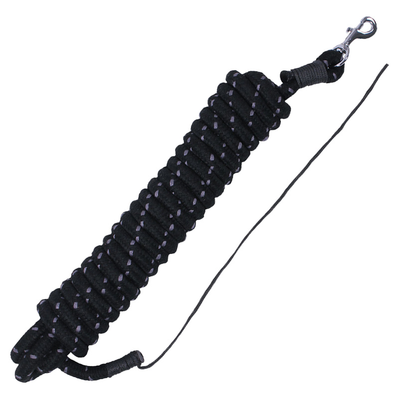 Svart, ekstra langt leietau fra QHP som egner seg godt til arbeid fra bakken og horsemanship. Den lengre lengden gir deg mulighet til å gi tydelige signaler til hesten på større avstand, og passer også for deg som ønsker et lengre alternativ enn vanlige leietau.