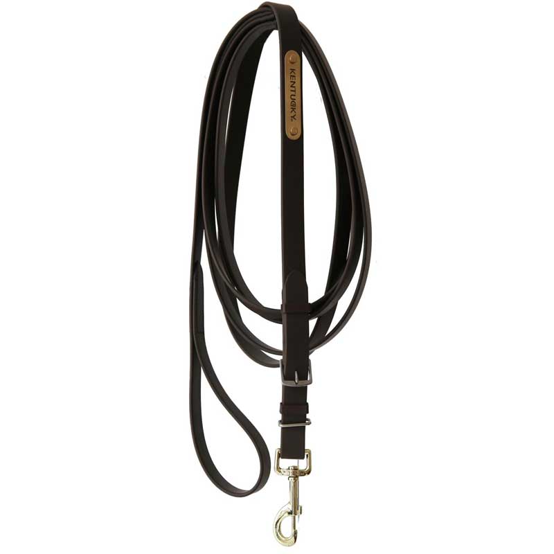 Leietau for hingst med lengde på 4 meter, laget av mykt gummiert materiale som gir godt grep og høy slitestyrke. Materialet ligger godt i hånden, sklir ikke og strekker seg ikke, og fungerer godt også i kaldt vær.
