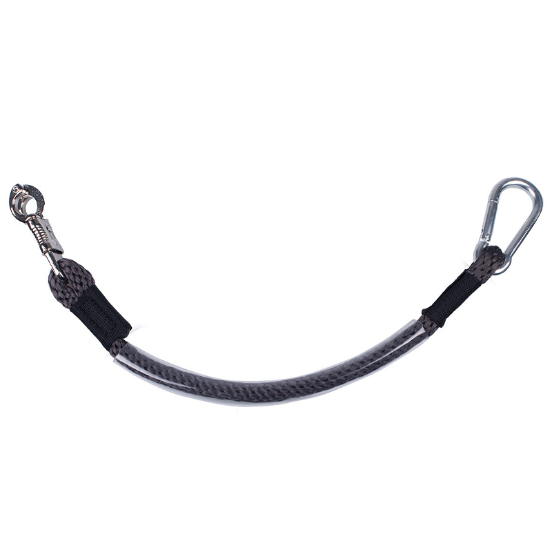 Tauet er utstyrt med panikkrok i den ene enden for rask og sikker utløsning ved behov, samt karabinkrok i den andre enden for enkel festing i transporten. Lengden på 60 cm gir en god balanse mellom bevegelsesfrihet og kontroll.
