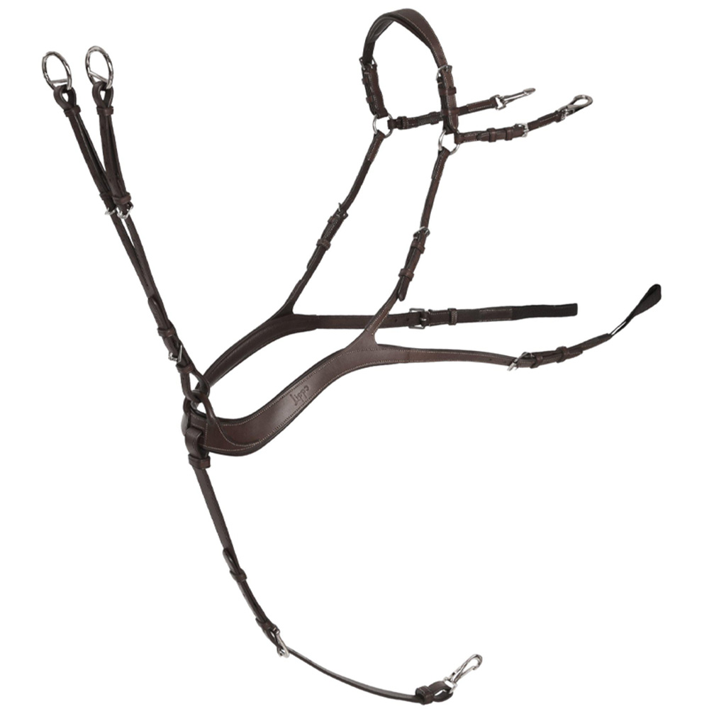 Modellen har en 5-punkts utforming og leveres med avtakbar martingal, som gir fleksibilitet etter behov. Fortøyet er laget i mykt og smidig amerikansk lær, og den anatomiske utformingen sikrer god bevegelsesfrihet for hesten.