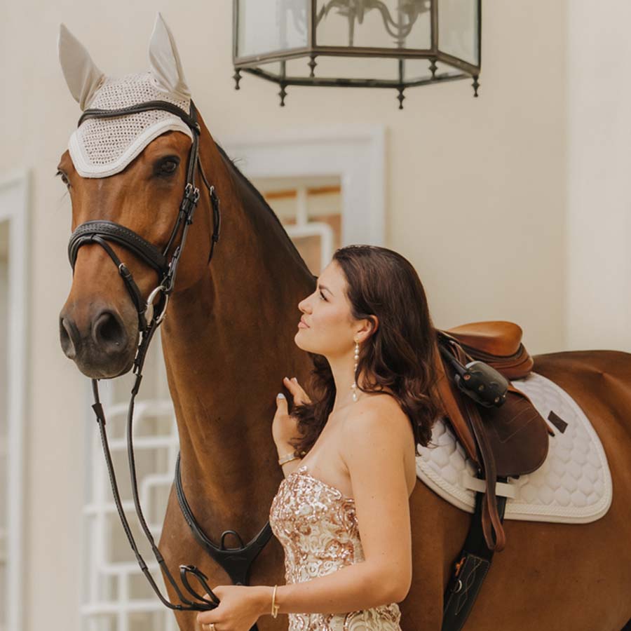 Ørehette Wellington Plaited Cord fra Kentucky er det perfekte komplementet til en klassisk look. Denne fluehette beskytter hestens ører mot fluer under ridning. Den er håndstrikket for økt holdbarhet og har en plaited cord-design som gir en elegant finish. Materialet rundt ørene er stretchy og har en slim fit, noe som gjør at huven sitter godt uten å gli. Den lengre nakkedelen forhindrer at huven beveger seg under ridning.