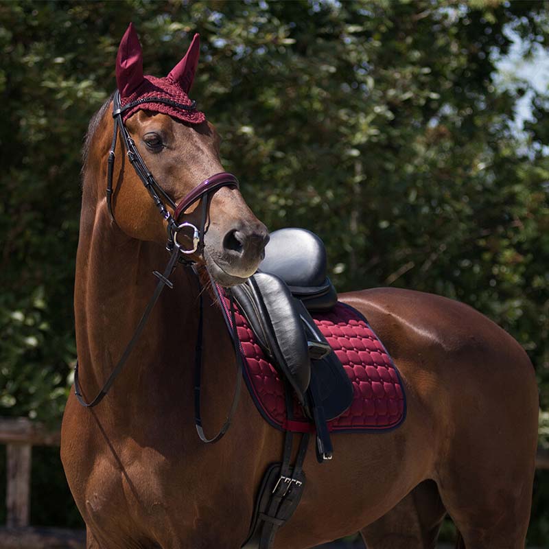 Diskret, heklet Ørehette, i vinrød, fra QHP - laget med elastiske ører for optimal komfort samt designet med en bølgete kant som en fin detalj.