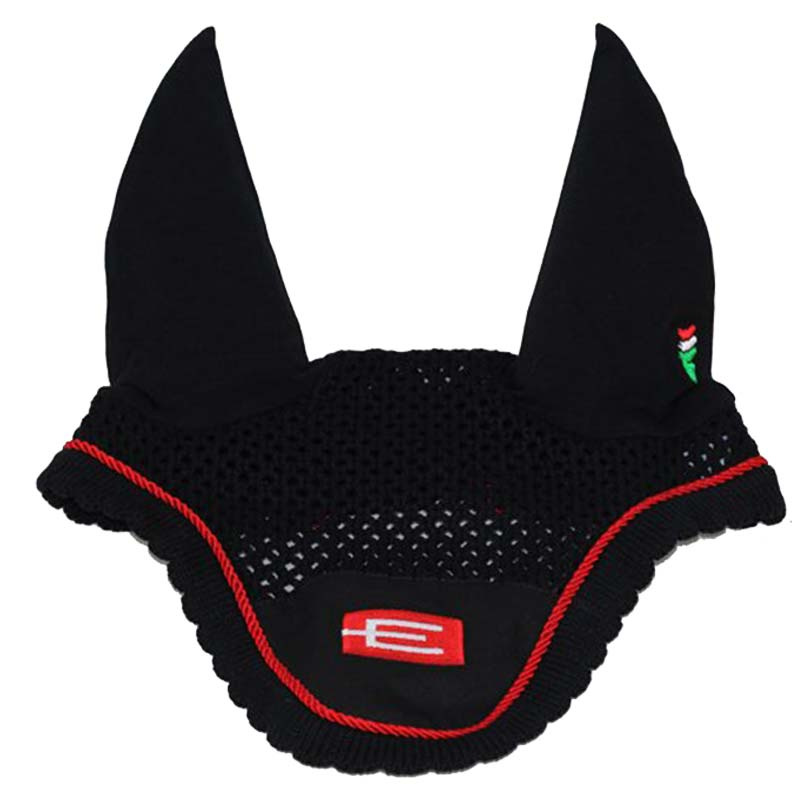 Ørehette fra Equiline med Equality Line-logoen foran. Matcher schabrakene fra samme varemerke med logo i samme farge. Riktig så fin ørehette som sitter godt og er behagelig for hesten.