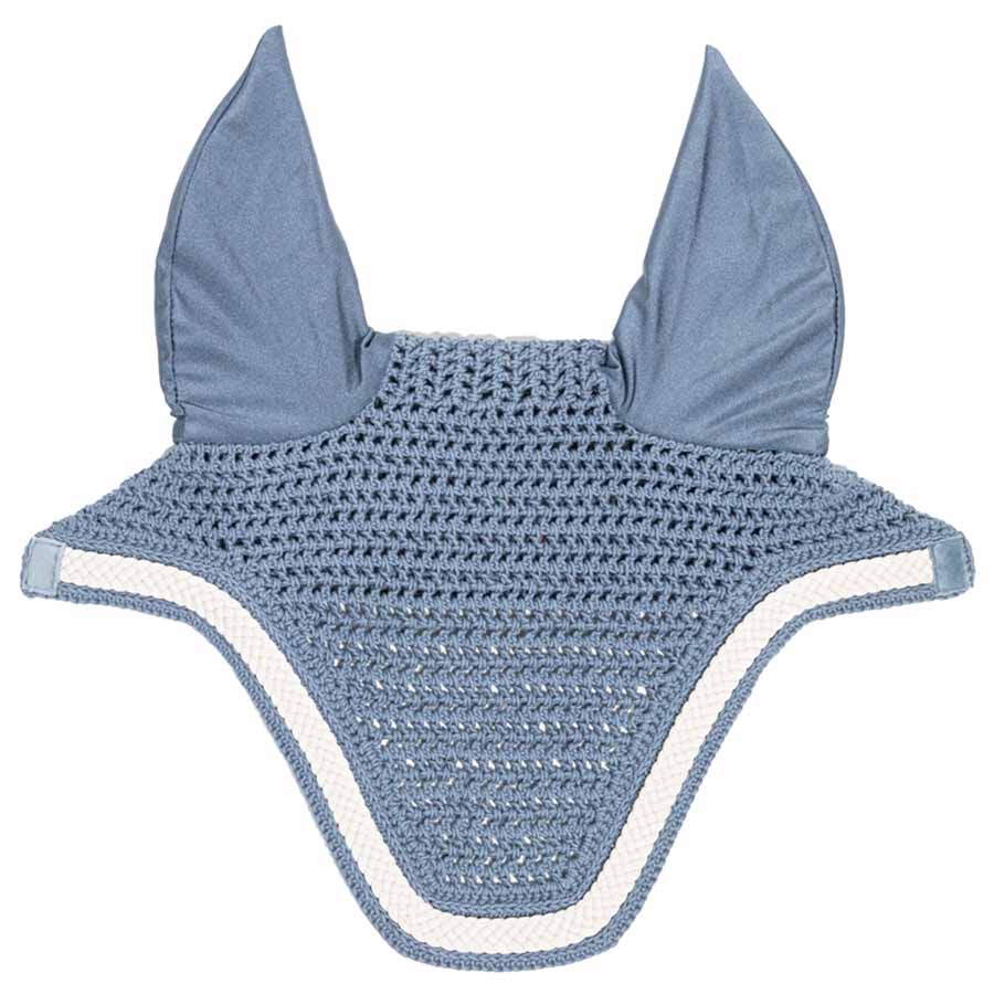 Ørehette Wellington Plaited Cord i lysblå er det perfekte komplementet til en klassisk look. Denne fluehetten beskytter hestens ører mot fluer under ridning. Den er håndstrikket for økt holdbarhet og har en plaited cord-design som gir en elegant finish. Materialet rundt ørene er stretchy og har en slim fit, noe som sikrer at hetten sitter godt. Den lengre nakkedelen forhindrer at hetten glir eller rører seg under ridning.