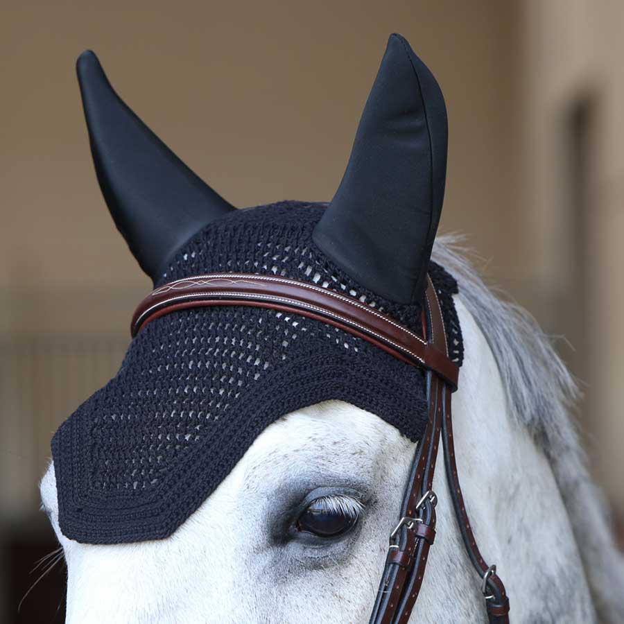 Materialet neopren brukes til å lage lydabsorberende hettene slik at hesten ikke blir distrahert av støy og plutselige lyder. - Kan vaskes