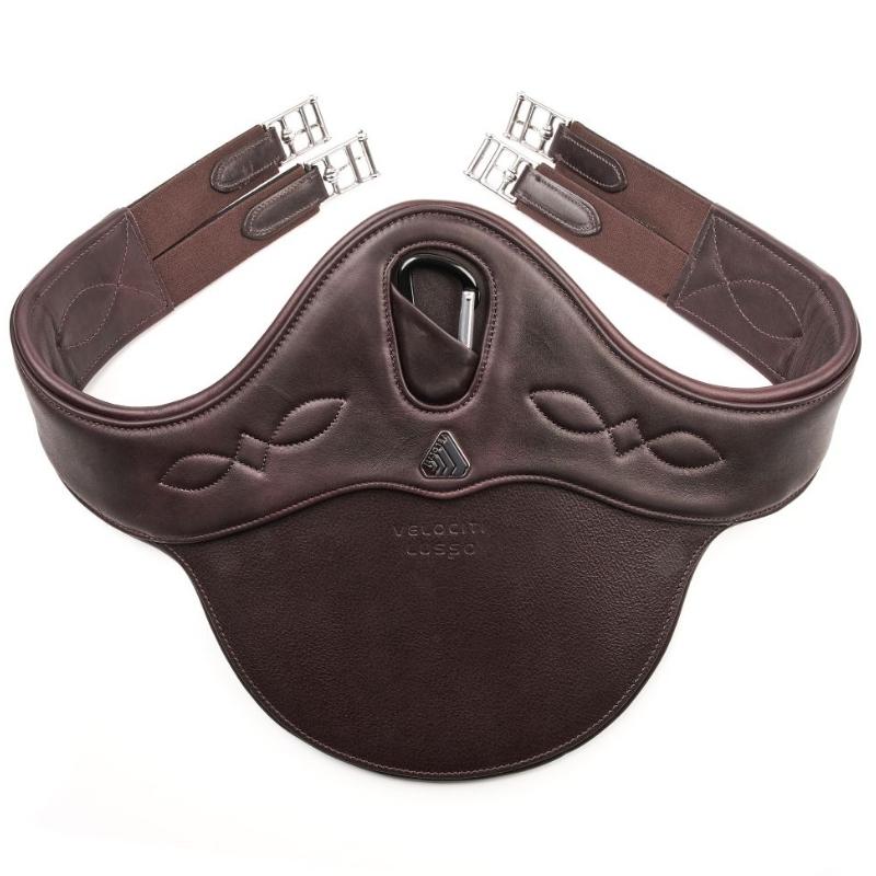 Velociti Lusso Pro Series Luxe plategjord er utviklet for optimal komfort og ytelse. Denne brune plategjorden har en anatomisk utforming som beskytter hestens underside under hopping og gir en ergonomisk og naturlig passform. Den har mykt fôr i kalveskinn, trykkavlastende polstring og avrundede kanter som gir bedre bevegelsesfrihet og reduserer risikoen for gnag.