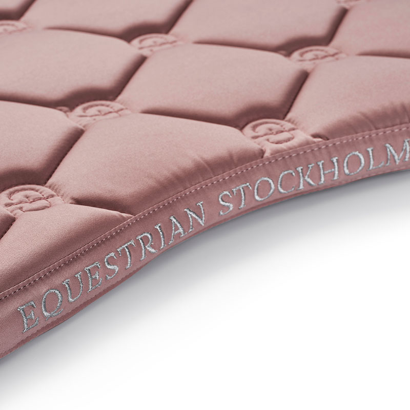 Dette elegante sjabraket i lys rosa med hvite og grå detaljer er både stilfullt og funksjonelt. Det er designet med vakre perler langs kanten og prydes av Equestrian Stockholms sølvmerke. Materialet er behandlet med High IQ cool comfort, som gir sjabraket hurtig tørking og fukttransporterende egenskaper. Dette hjelper hesten din å holde seg tørr og frisk lenger.