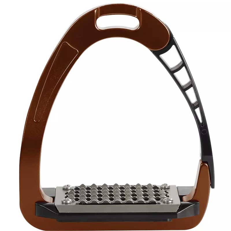 Mekanismen som frigjør foten utløses i nederkanten, og hvis hele åpnearmen skulle løsne (fordel ved visse typer fall), kan den enkelt klikkes på plass igjen. Den unike materialkombinasjonen i Arena gjør også at den er mindre stiv enn en tradisjonell aluminiumsstigbøyle, noe som gir en behagelig svikt og demper støt. Dette fører til en deilig lettelse for rytteren på både knær, rygg og ankler.