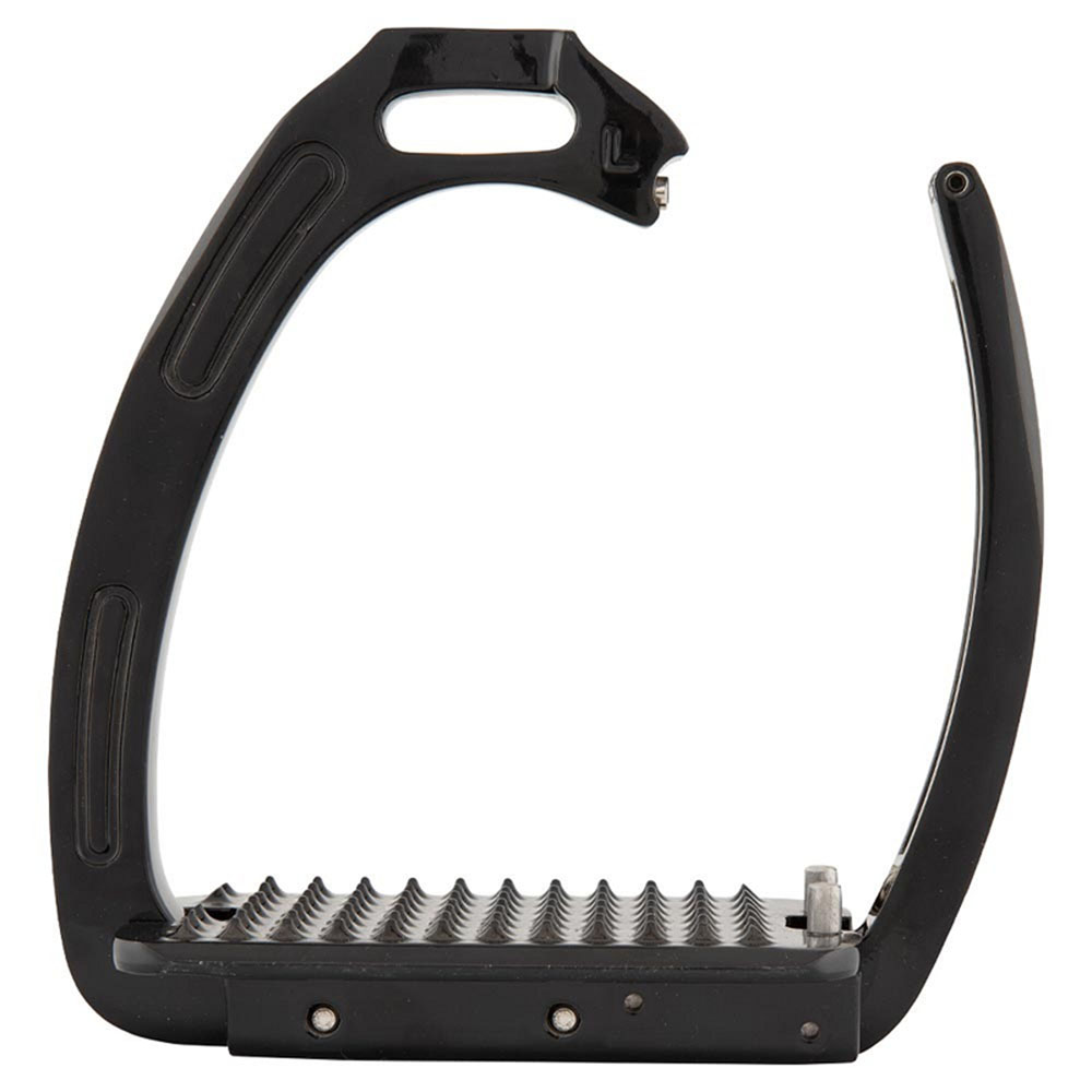 Stigbøylerne, hvis materiale er svært slitesterkt og av god kvalitet, kommer i en stilren, svart farge med en matchende bue. Den høyre stigbøylen er merket med R, og den venstre er merket med L. Selges i par.