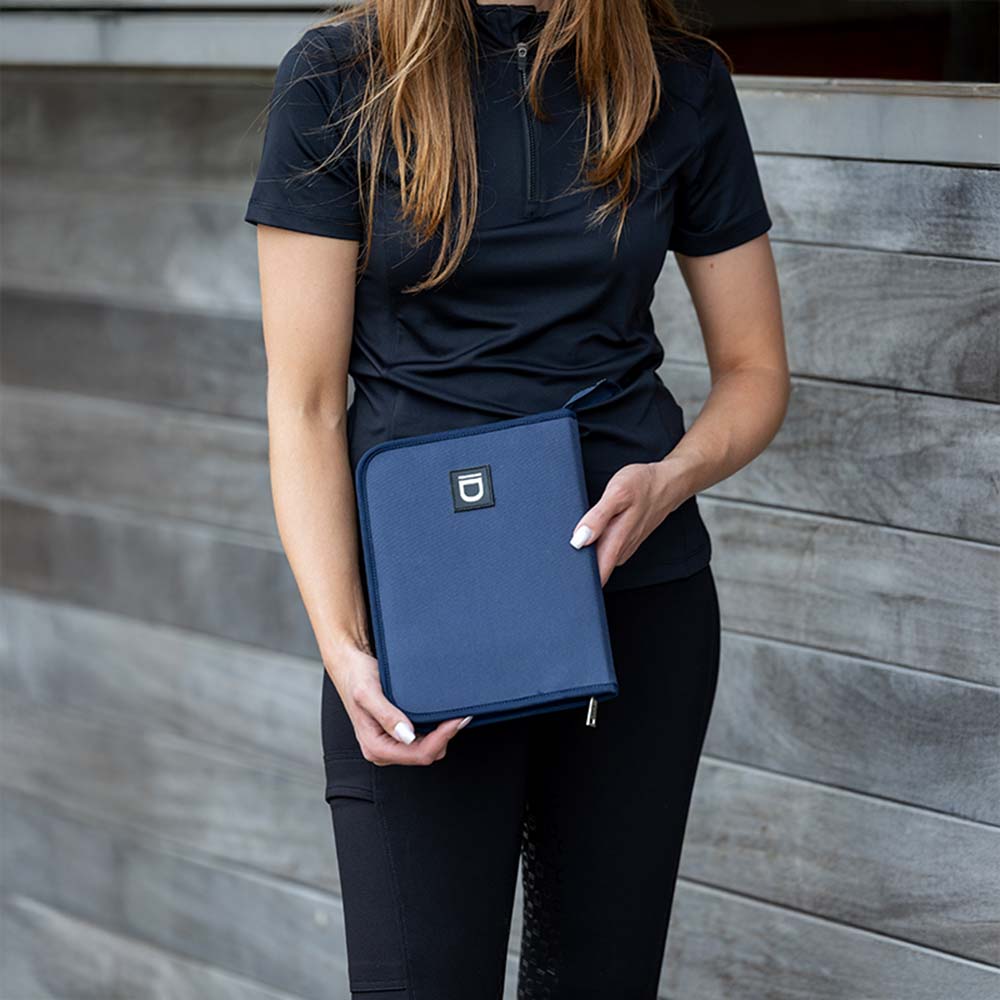 Passmappe med glidelås. Innsiden er designet med flere lommer som gjør det enkelt å holde orden på både hestens pass og andre viktige dokumenter.