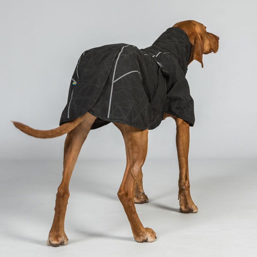 Kraven er høy, formsydd og justerbar med to snorer – én i øvre kant og én rundt halsen. Dekkenet har også to åpninger for kobbel eller line, samt reflekterende mønster i stoffet for økt synlighet.