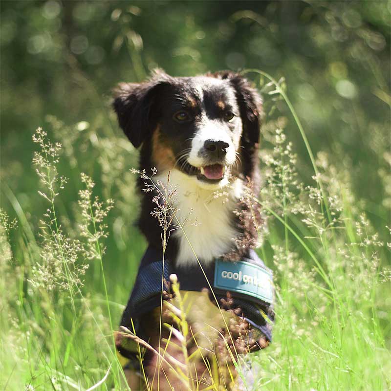 Dekkenet er enkelt å justere med sterke borrelåsbånd rundt både mage og hals. Når dekkenet ikke brukes på hunden, kan du også åpne det helt, noe som gjør det perfekt å bruke som et kjølende teppe.