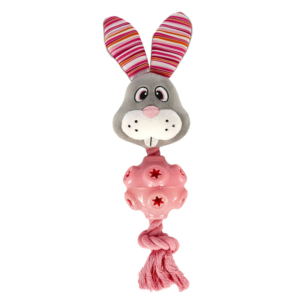 Den søte kaninen kombinerer det beste med det beste og inkluderer både tau og en slitesterk gubbibolle som inviterer til tygging, samt et mykt plyshhode med pip. Perfekt for deg som er litt usikker på hvilken type leke din, eller din venns, hund egentlig foretrekker, eller om du kanskje bare er på jakt etter noe som garantert vil slå an hos alle stallens hunder!