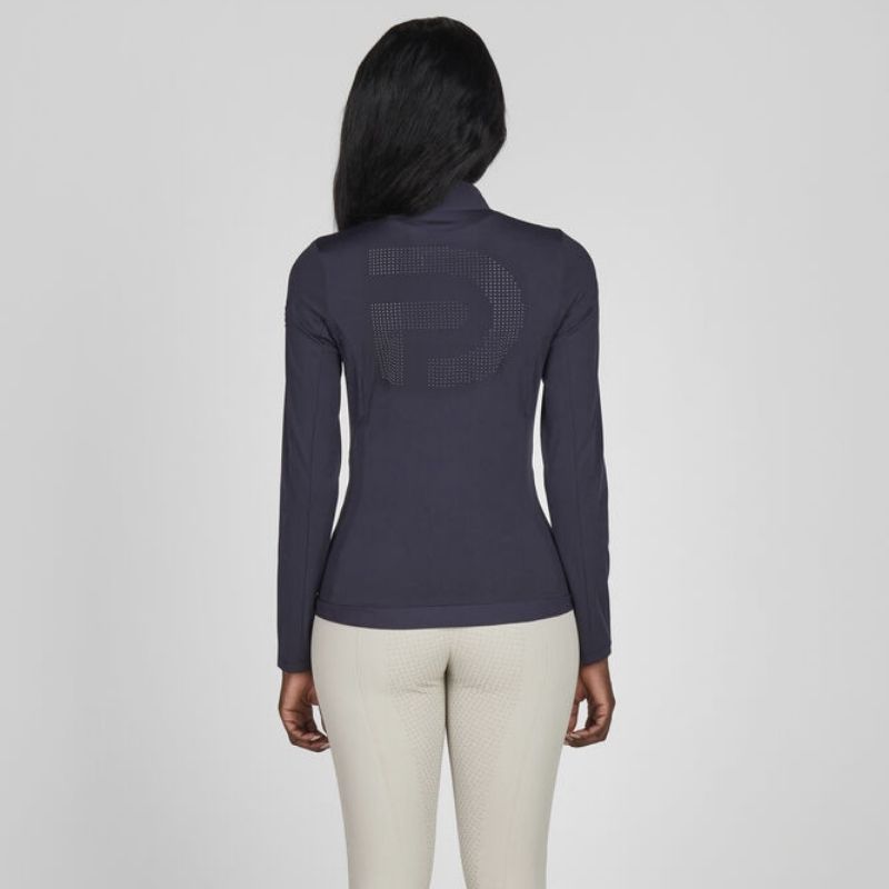 Pikeur Core funksjonsjakke i marineblå er et allsidig plagg som kombinerer komfort, holdbarhet og moderne stil. Denne elastiske jakken har en sporty ståkrage og er laget av et slitesterkt, formende ytterstoff som gir en flatterende passform og full bevegelsesfrihet. Lett ribbestoff ved kragen og bakre kant gir økt fleksibilitet og komfort. Perforerte paneler på sidene, foran og bak sikrer optimal ventilasjon, noe som gjør jakken ideell for aktiv bruk. En ton-i-ton 2-veis glidelås foran og matchende glidelåser på sidelommene gir et rent, strømlinjeformet utseende med praktisk funksjonalitet. Subtile merkevare detaljer, inkludert en Pikeur-print på innerklaffen og på ermet, fullfører designet.